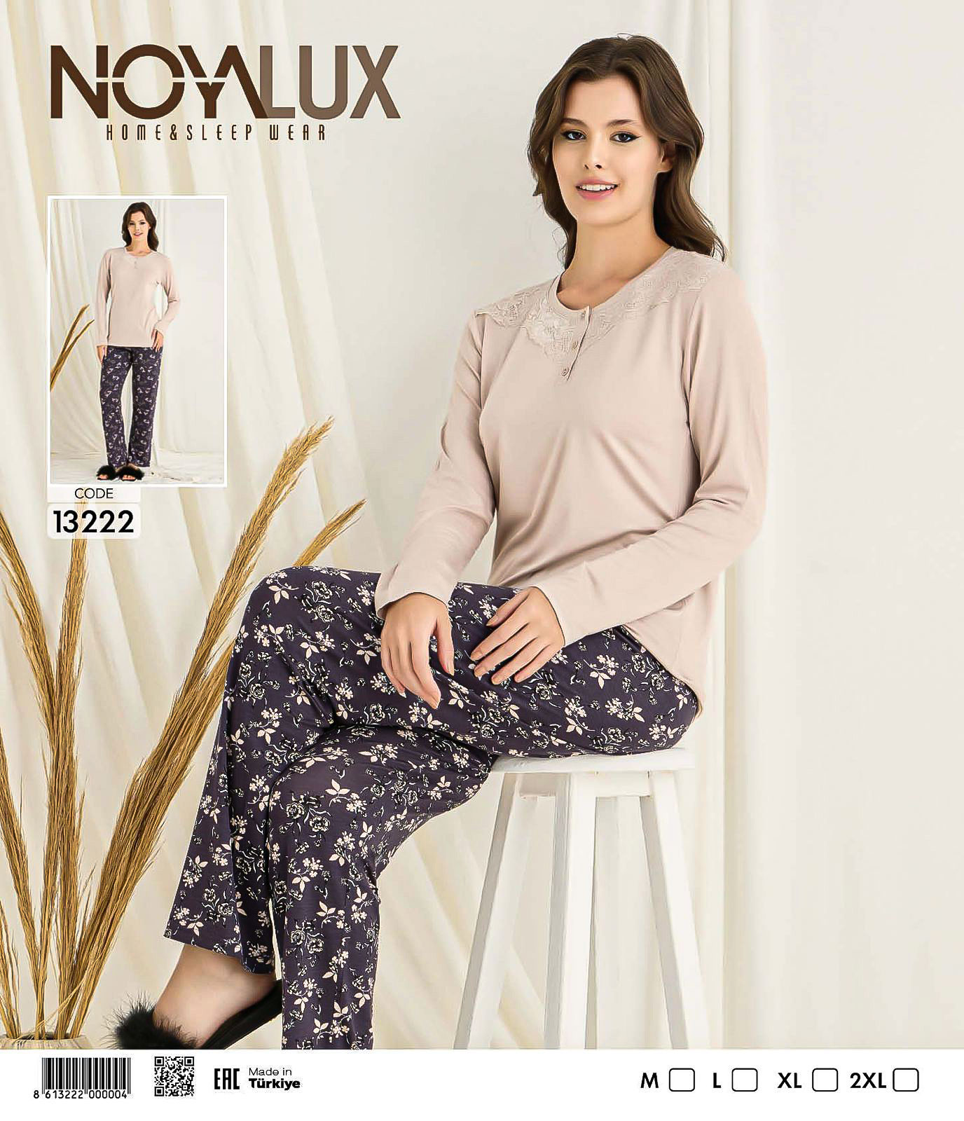 Rahatlığın ve şıklığın buluştuğu Bej Dantel Yaka Düğmeli Üst & Koyu Çiçek Desenli Alt Kadın Pijama Takımı -Noya 13222, Noya markasının zarif tasarımıyla evde de stil sahibi olmanızı sağlıyor. Bu özel pijama takımı, hem uyku konforunu hem de günlük yaşamda rahatça giyilebilecek şıklığı bir araya getiriyor.