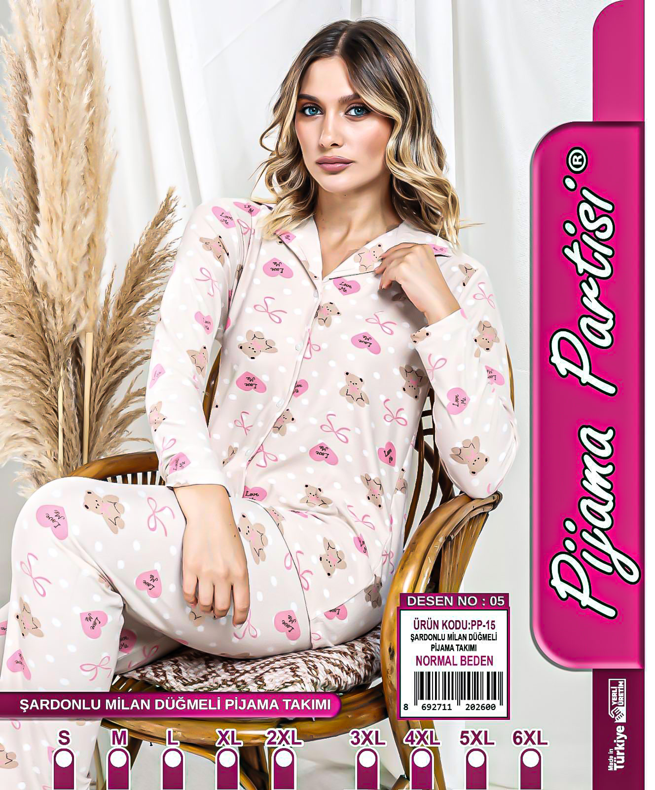 BEYAZ AYICIKLI KALPLİ PİJAMA TAKIMI 05