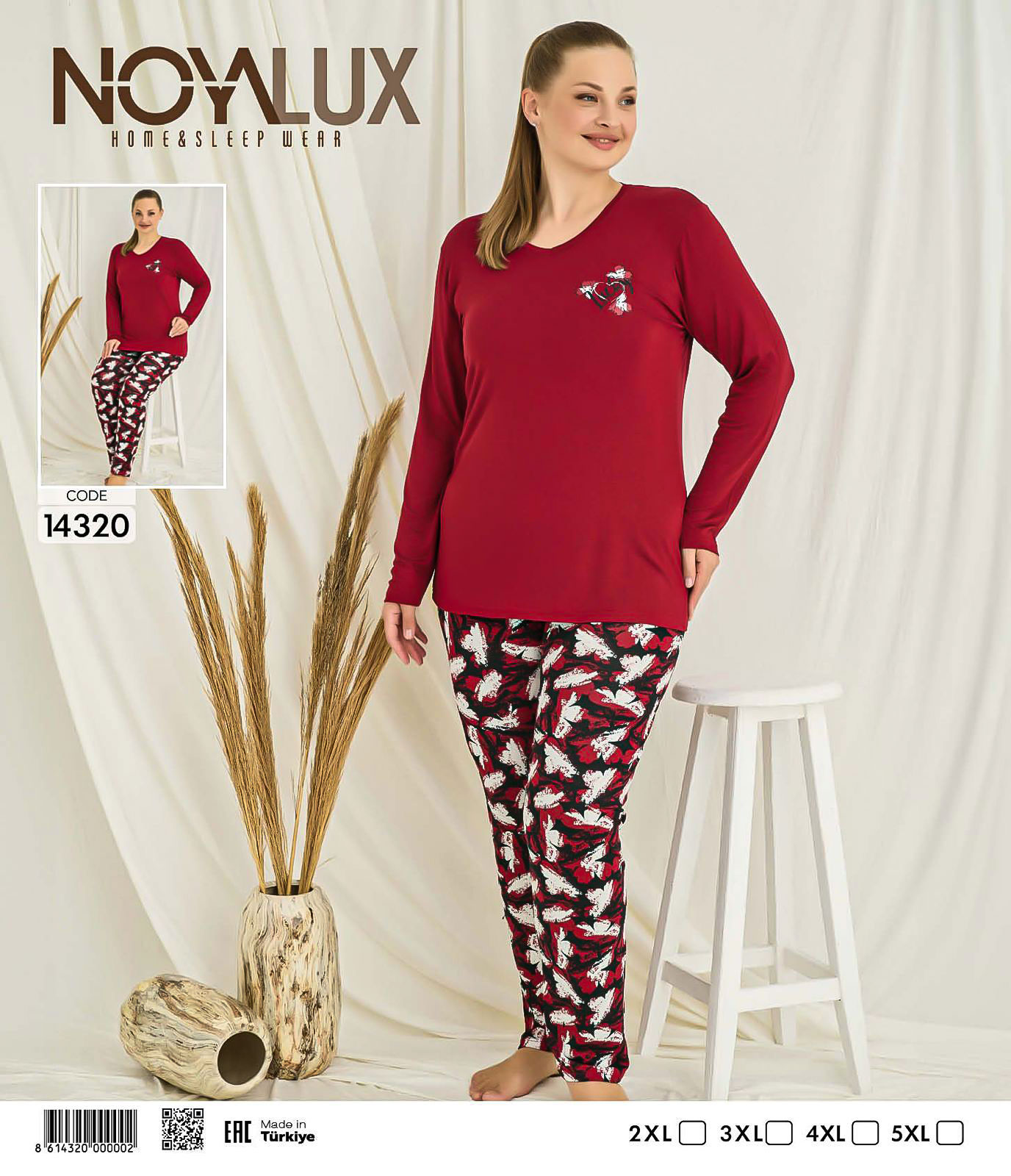 Konforlu bir uyku ve evde şıklık arayan kadınlar için tasarlanmış, Büyük Beden Bordo Kalp Baskılı Üst & Yaprak Desenli Alt Kadın Pijama Takımı - Noya 14320 ile tanışmanın tam zamanı! Şıklığı ve rahatlığı bir arada sunan bu pijama takımı ile kendinizi özel hissedin.
