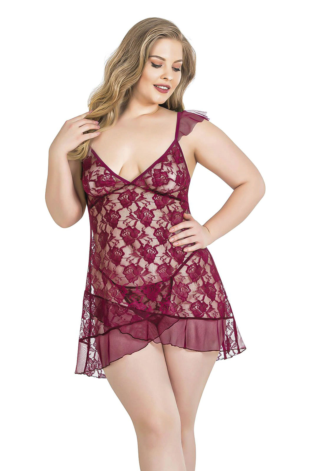 Özel gecelerin vazgeçilmezi bordo rengindeki bu tül gecelik ile büyüleyici bir silüet yaratın. Tamamen gül desenli dantel işlemelerle kaplı şeffaf tül kumaş, alt kısımdaki şifon fırfırlı etek ucuyla romantik bir hava kazanır. Fırfırlı ince askı detayı ve derin V yaka kesimi omuz ve dekoltenizi nazikçe ön plana çıkarır. Rahat ve dökümlü kesimi ile şıklığı konforla birleştirir. Takım, uyumlu tanga külotu ile tamamlanmaktadır. Tutkulu anlar için iddialı ve zarif bir seçimdir.