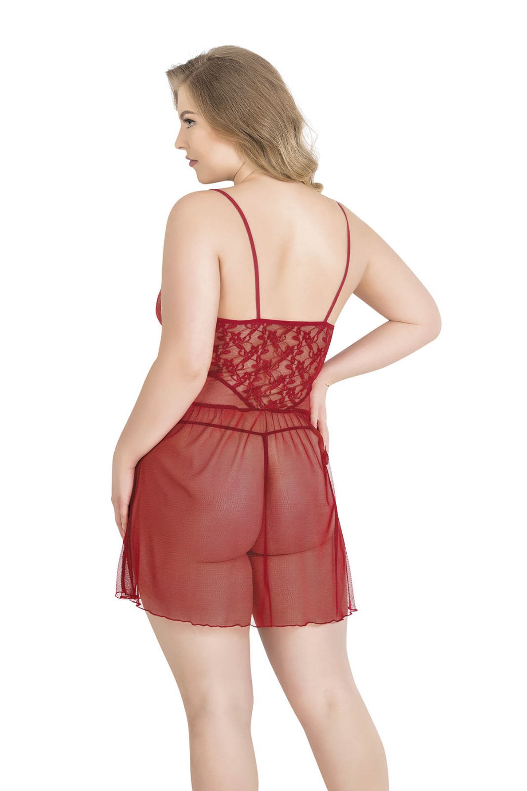 Büyük Beden Kırmızı Tül Gecelik 3033