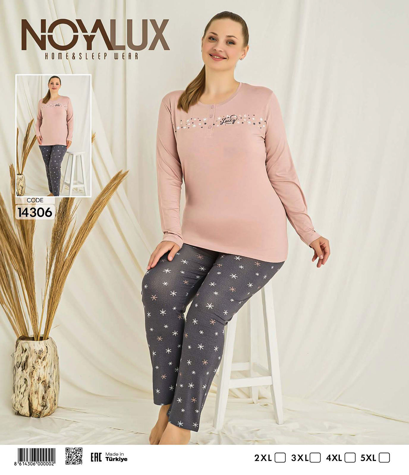 Konforlu bir uyku ve şık bir görünüm arıyorsanız, Noya'nın Büyük Beden Pudra Düğmeli ve "Lucky" Baskılı Üst & Yıldız Desenli Alt Kadın Pijama Takımı tam sizlik! Bu özel tasarım, rahatlığınızı ön planda tutarak evde geçirdiğiniz zamanın kalitesini artırmayı amaçlıyor.