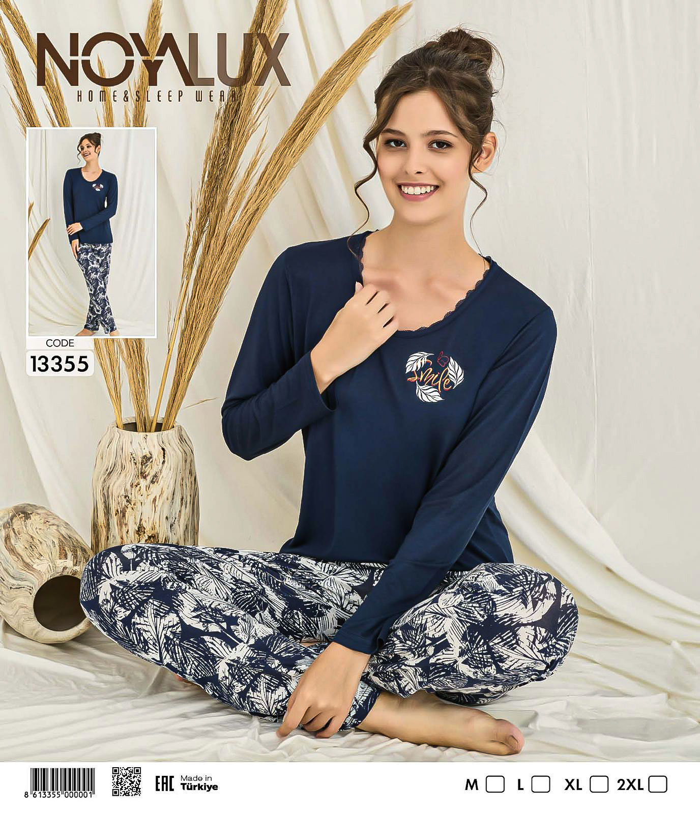 Bu Lacivert Dantel Yaka "Smile" Baskılı Üst & Yaprak Desenli Alt Kadın Pijama Takımı, sadece rahatlık sunmakla kalmıyor; aynı zamanda şıklığıyla da dikkat çekiyor. Günün yorgunluğunu atmak, evde geçirdiğiniz zamanları daha keyifli hale getirmek için mükemmel bir tercih. Kaliteli malzemesi ve özgün tasarımı ile uzun süreli bir kullanım vaat ediyor. Kendinize ya da sevdiklerinize hediye edebileceğiniz harika bir alternatif. Şıklığı ve konforu bir arada yaşayacağınız bu pijama takımı ile evdeki anlarınıza değer katın!