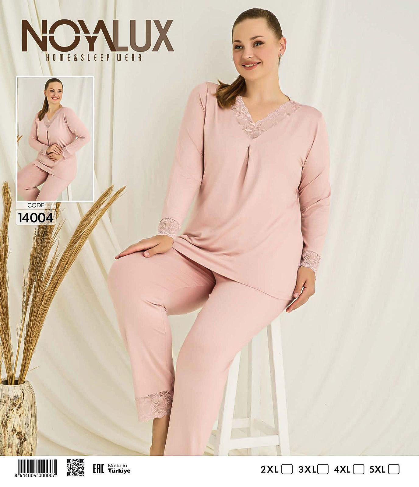 Pembe Uzun Kollu Dantelli V Yaka Pijama Takımı - Noya 14004
