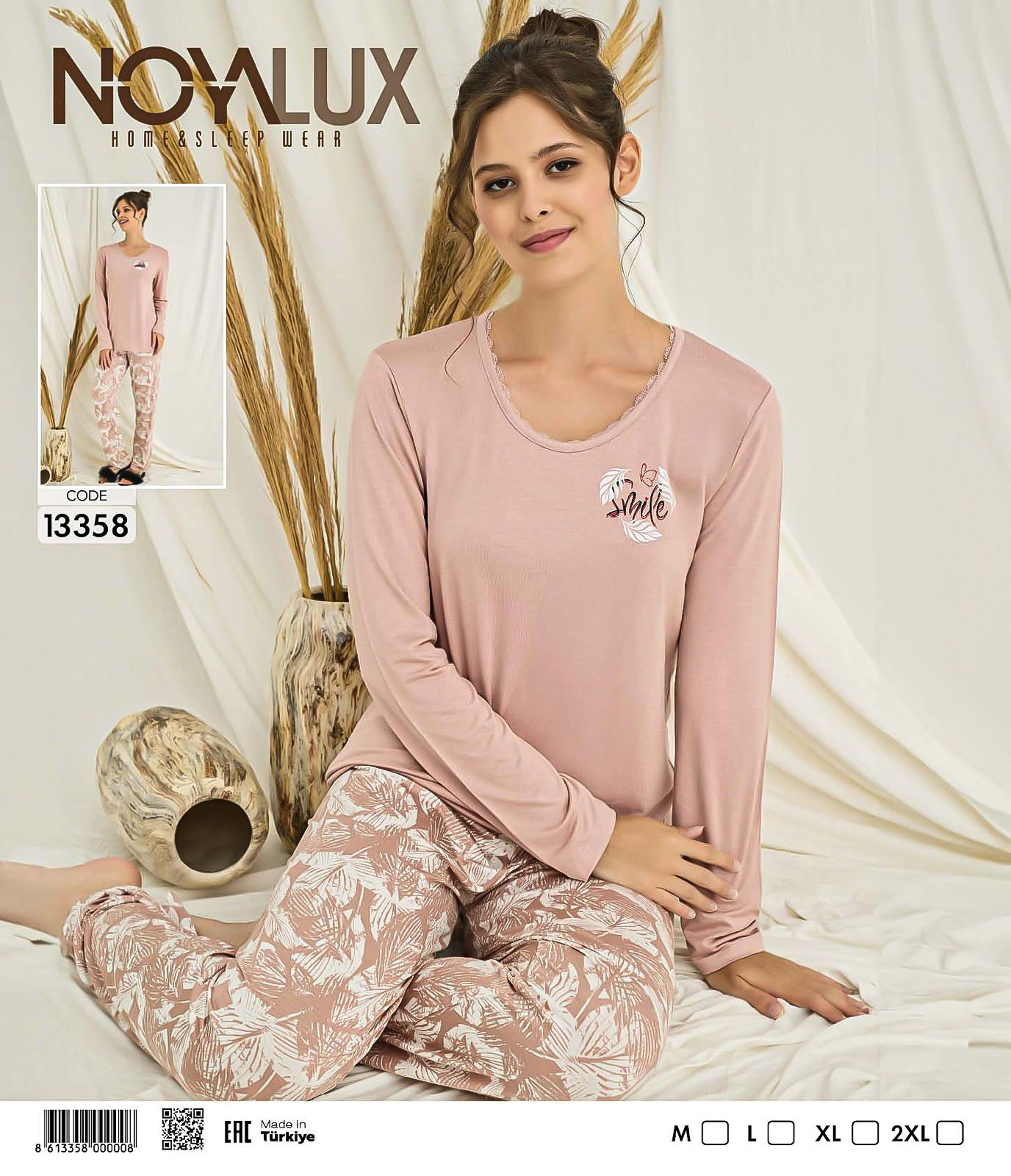 Rahatlığı ve şıklığı bir arada sunan Noya 13358 Pudra Dantel Yaka ve "Smile" Baskılı Üst & Yaprak Desenli Alt Kadın Pijama Takımı, evde geçirdiğiniz zamanların vazgeçilmezi olacak. Özel olarak tasarlanmış bu pijama takımı, hem uyku sırasında hem de günlük rahat aktivitelerinizde şıklığınızı korumanızı sağlar.