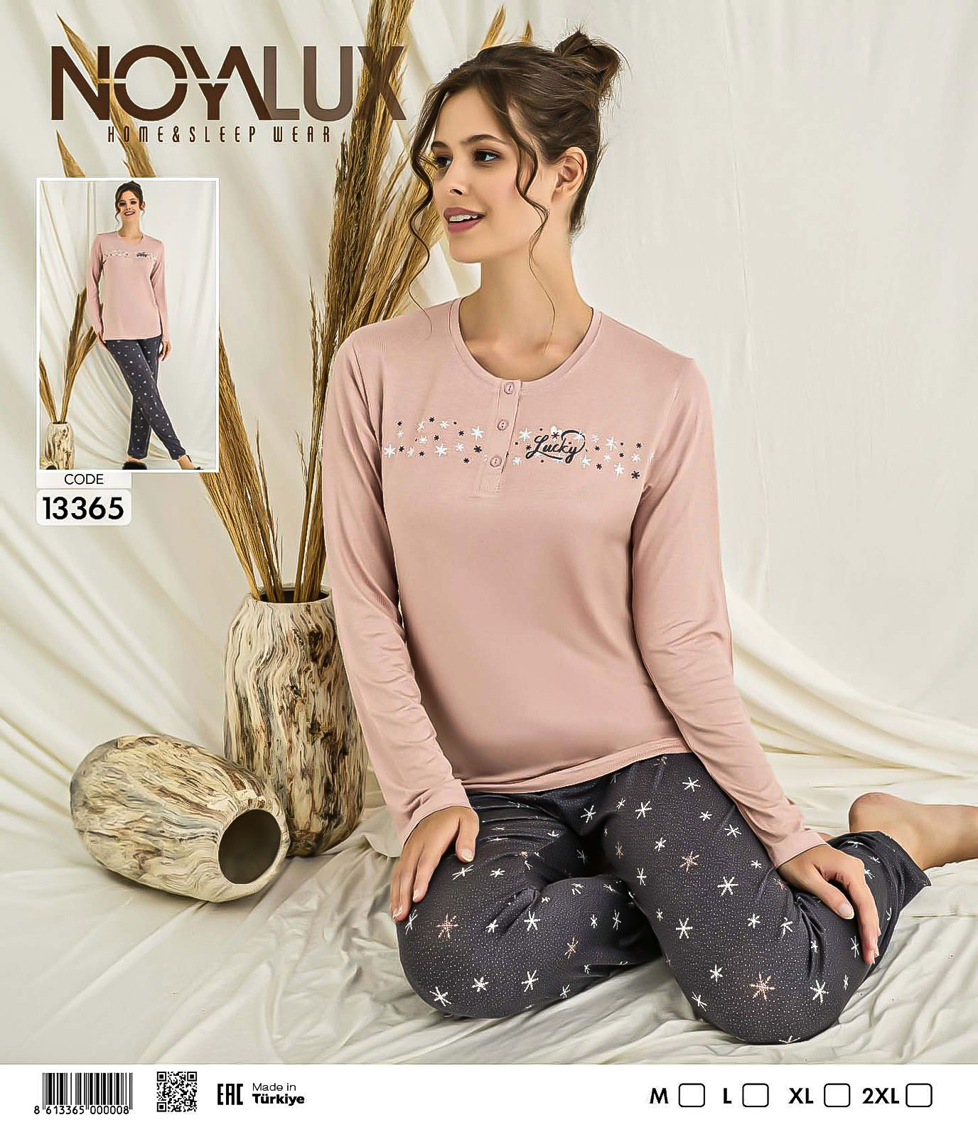 Bu pudra renkteki, düğmeli üst ve yıldız desenli alt kombinasyonu ile Noya 13365 Kadın Pijama Takımı, ev giyiminizin vazgeçilmezi olacak. Şıklığı, konforu ve kaliteli kumaşı ile gece uyku saatlerinizi daha da keyifli hale getiren bu tasarım, her kadının gardırobunda yer almayı hak ediyor.